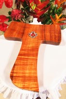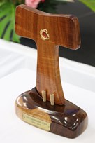 The relic of St. Marianne is housed in a wooden Tau cross (Franciscan cross in the shape of the Greek letter Tau), which can be laid flat or displayed on an accompanying wooden stand. The dimensions are as follows: