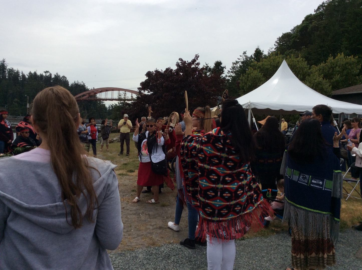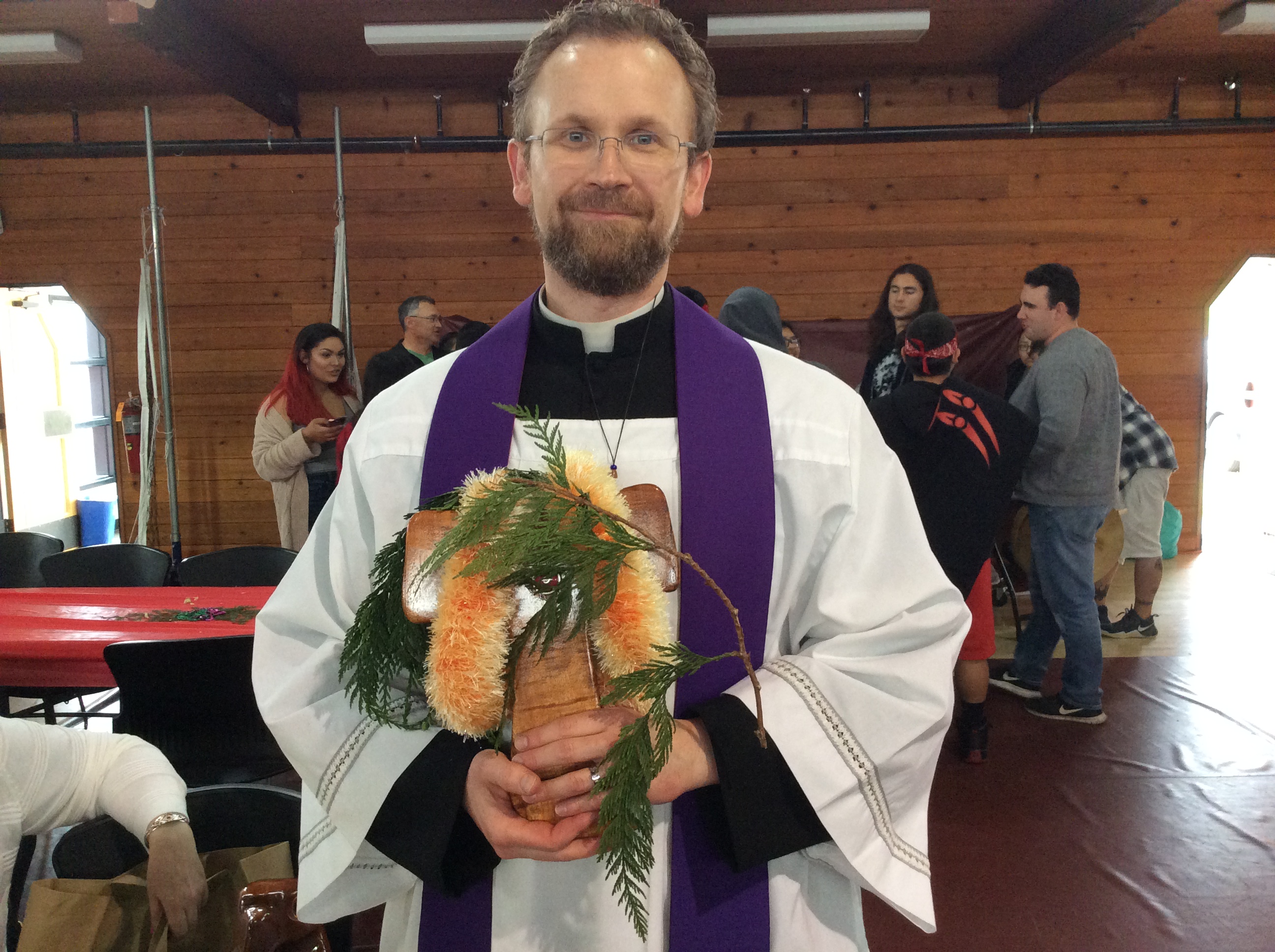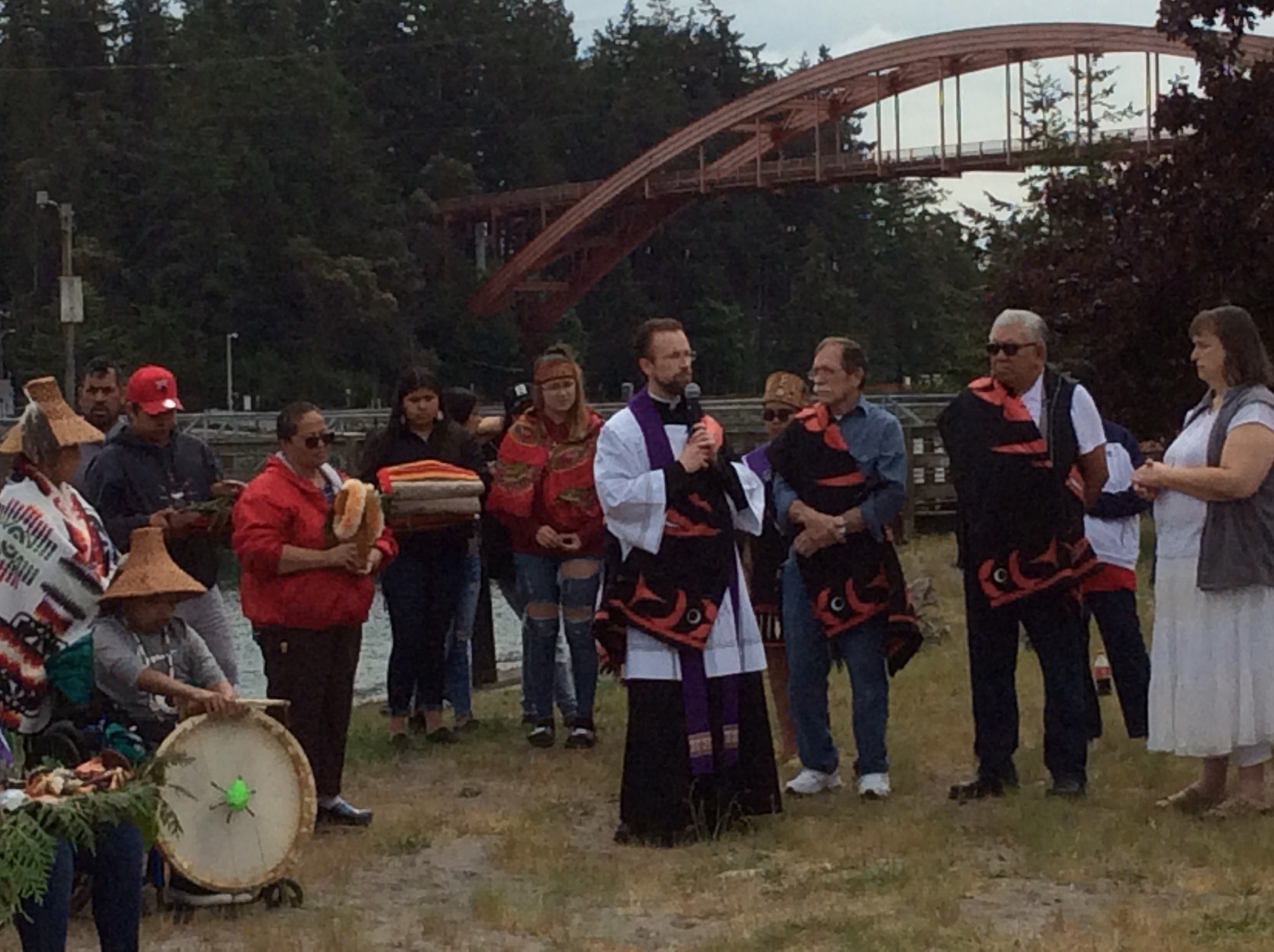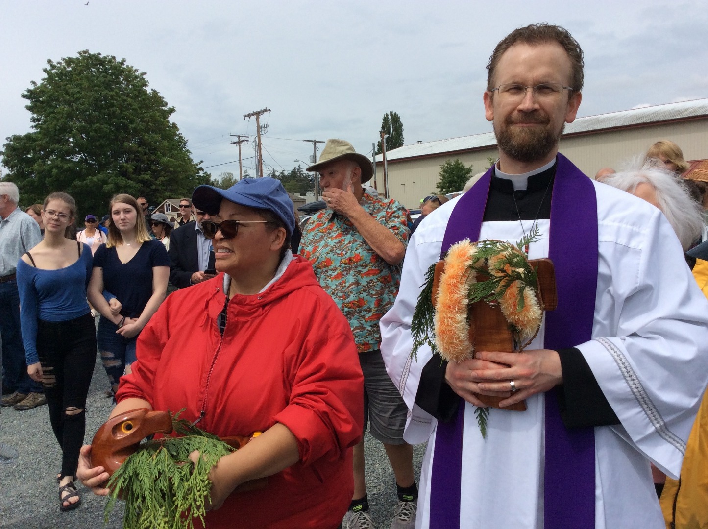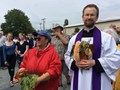 Thursday, May 16th St. Marianne took a very special detour today. We were invited to attend the Native American "Blessing of the Fleet & First Salmon Ceremony at Swinomish". Sister Cheryl held the Native American-made holy water container and Fr. Mel Strazicich has St. Marianne wrapped in a lei and adorned with the female cedar. After the blessing, a member of the fleet each sailed in one of the four directions: north, south, east, and west. Following this event, St. Marianne’s relic was taken to a homebound visit.