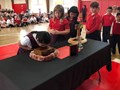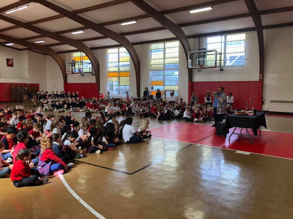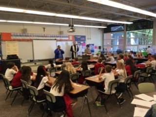 Wednesday, May 15th (School): At 8:30 AM a school Mass was held, followed by a talk on the Saints, veneration of the relics, a meet and greet, and sales of gift items. Due to the mass, talk, and veneration being held on a school day, the students were dismissed right after Mass; however, the teachers showed a video of the saints to the students the day prior, on May 14th. Following the meet and greet at the parish, the relics were taken to an all-school assembly where a Q&A session was held, followed by individual grade levels processing by the relics.