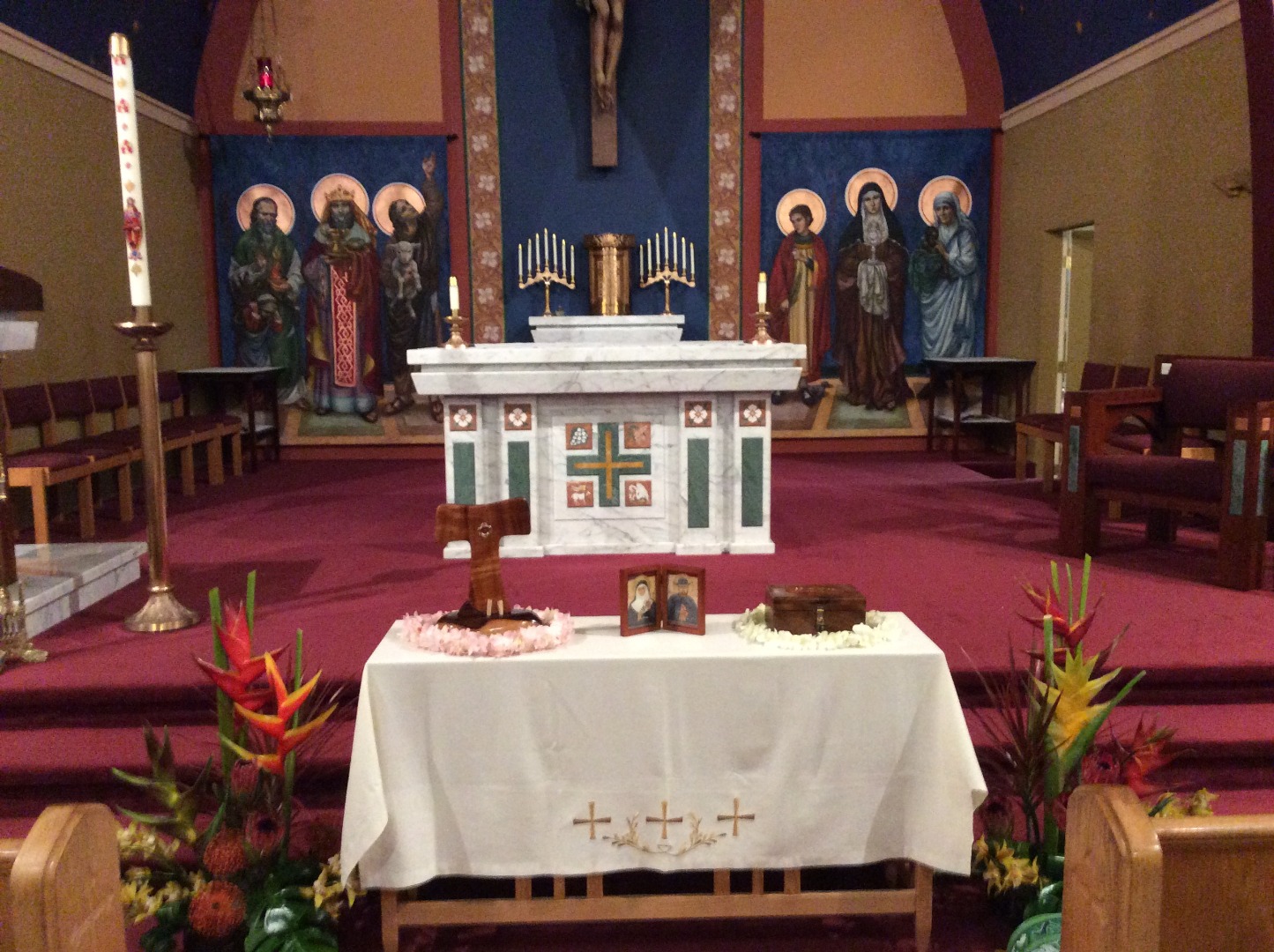 At this parish are a good number of Hawaiians who are now Washington State residents; thus, liturgical hula and songs by Robert Mondoy were performed and sung at the Mass. Mahalo nui loa to Robert for giving permission to use his songs at this closing relic tour Mass.