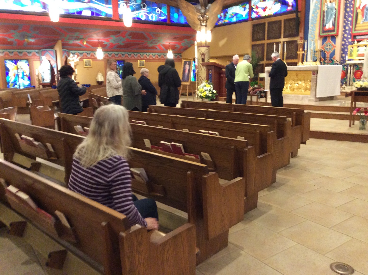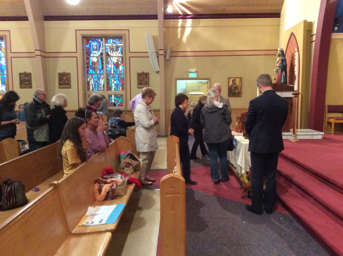 Wednesday, May 15th (Parish): Upon arriving at the parish, the relics were taken to a RCIA gathering, where a brief talk on the saints, a Q&A session, and viewing of the relics took place. At the Q&A it was shared that the relic of Saint Kateri Tekakwitha had been to the parish the year before, and that in a nearby neighborhood lived the young boy whose claim that his infection with flesh-eating bacteria disappeared after he prayed for her intercession was accepted by Pope Benedict XVI in December 2011, thus recognizing Tekakwitha as a saint. She was canonized the following October with Saint Marianne.