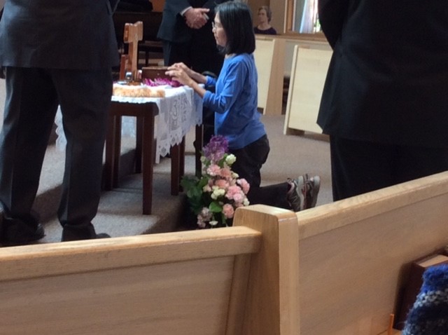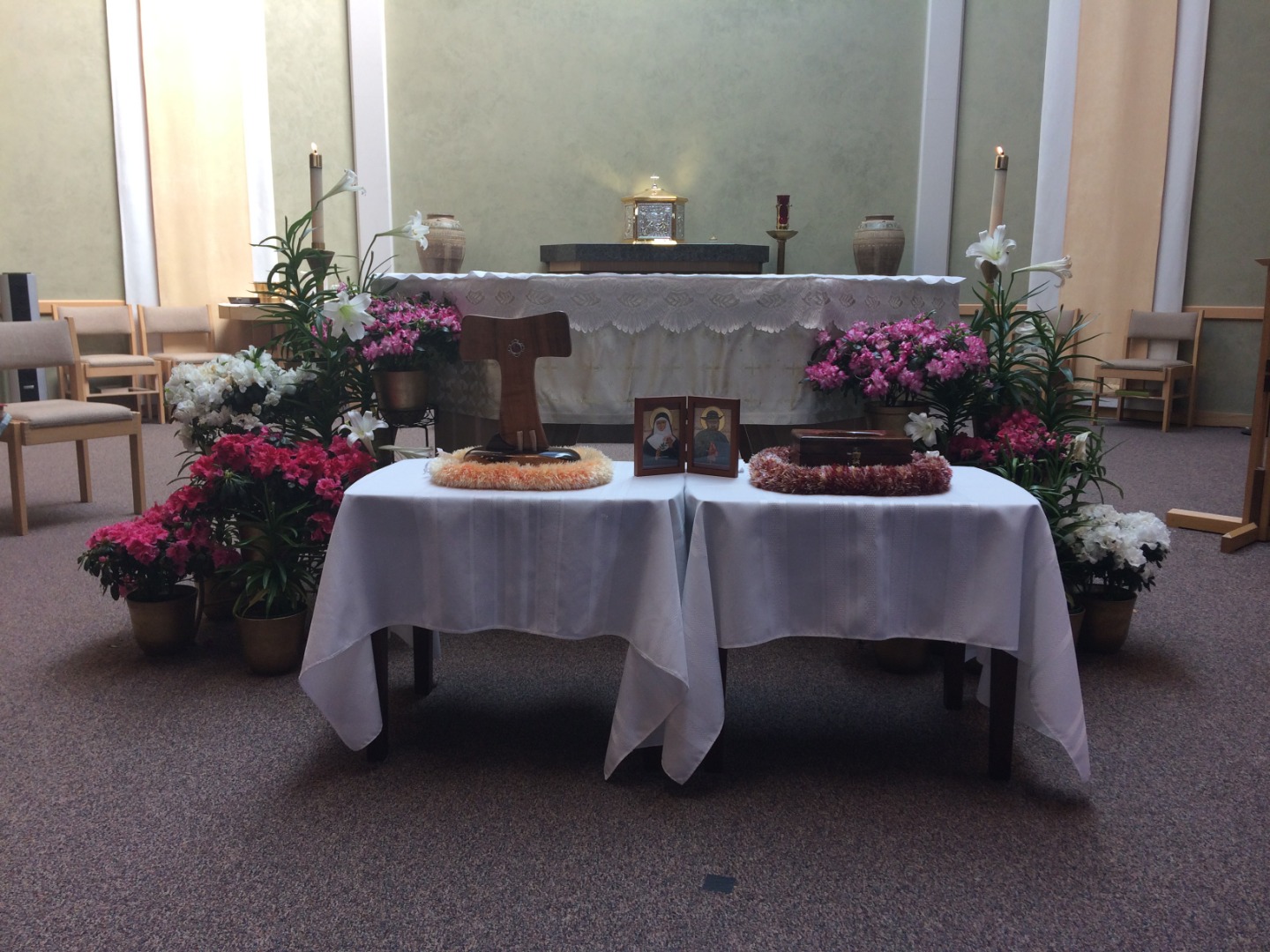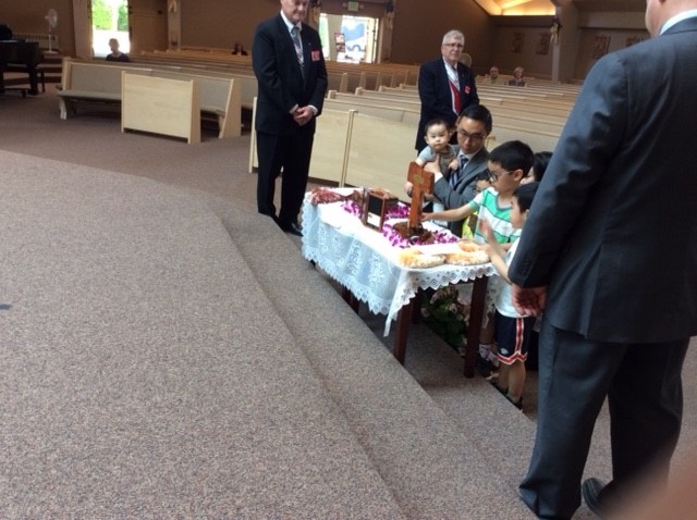 Friday, May 17th: There was a 6 PM veneration, Mass, talk, sales of gift items, and dinner. In attendance were family members of Audrey Toguchi, the woman that received the "second miracle" that led to St. Damien's canonization. Audrey’s niece processed in with the St. Damien relic.