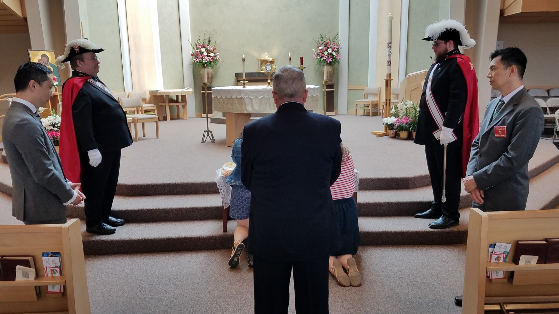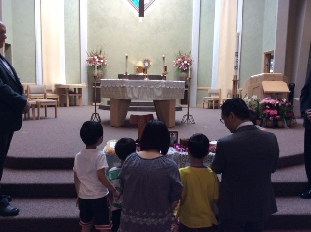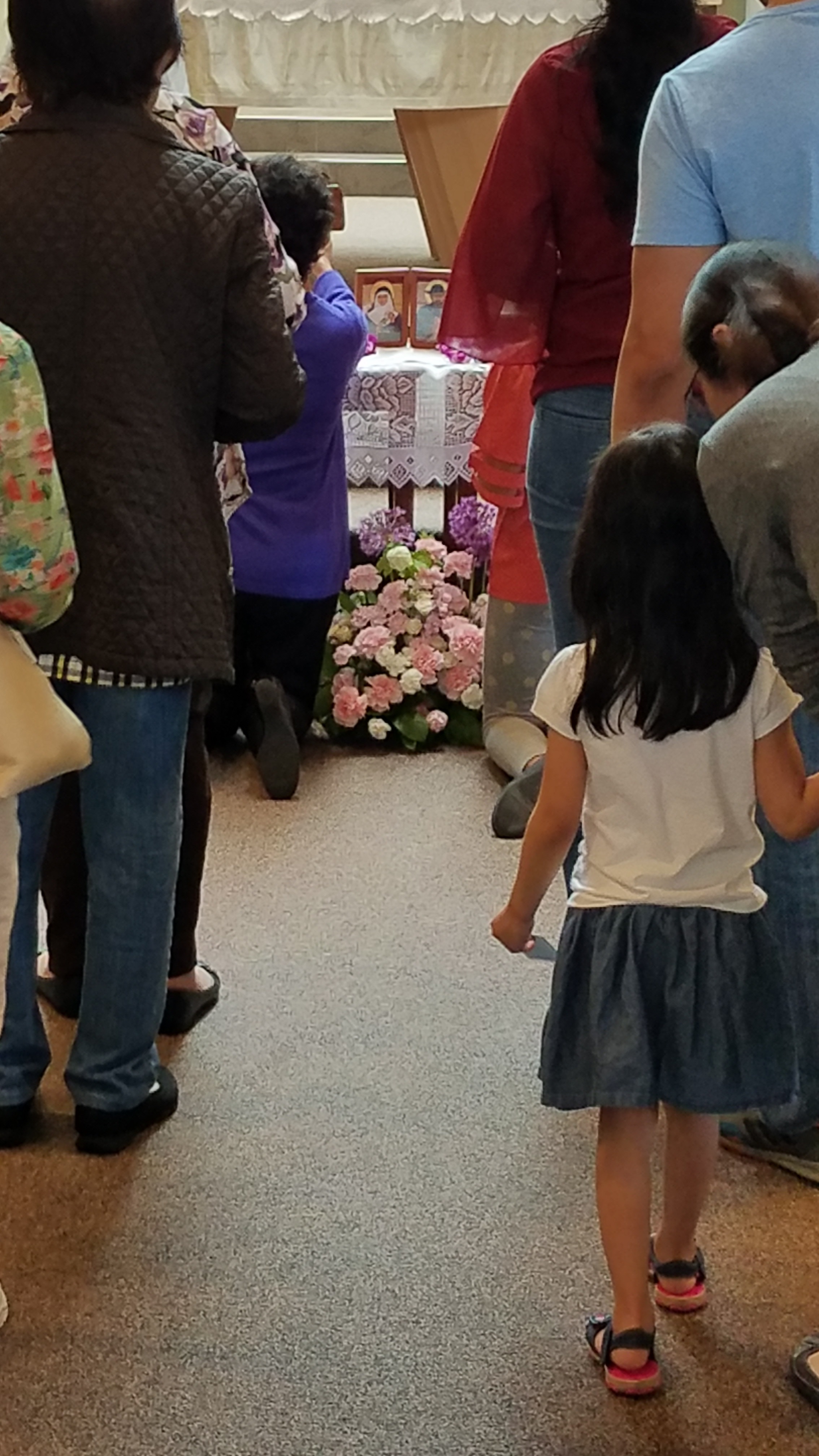 Tuesday, May 14th: There was a 6 PM Mass, followed by a talk on the saints, veneration of the relics and a meet and greet at the parish. The last picture is the family that processed in with the relics.