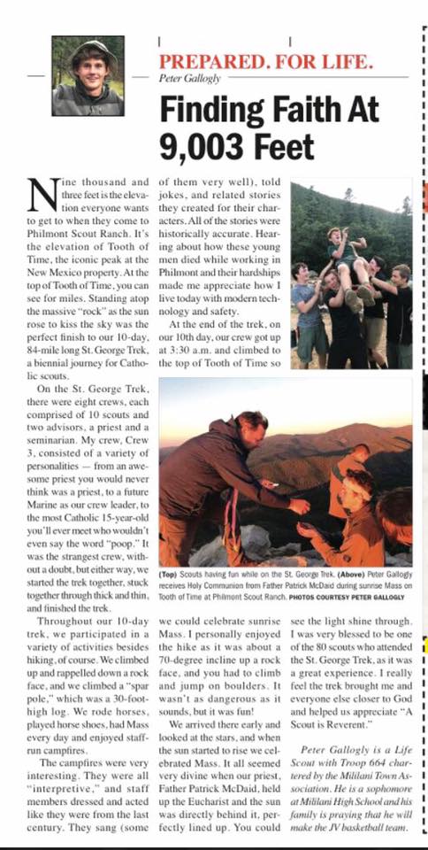 Hike, camp, pray: Island scouts sought for once-in-a-lifetime St. George Trek (Hawaii Catholic Herald, February 8, 2018)