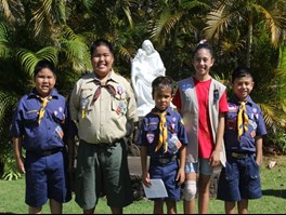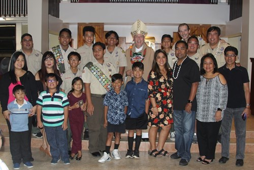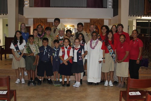 Award recipients at our 2019 Scout Mass celebration at Our Lady of Good Counsel Parish in Pearl City.