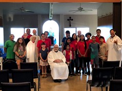 Here's a picture of our St. George Trekkers with Bishop Larry Silva: