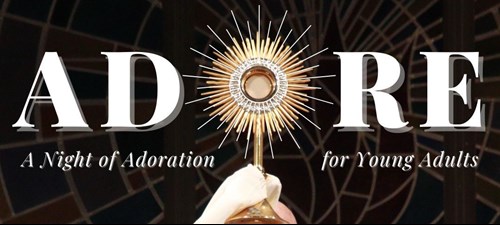 In brief, ADORE is a Holy Hour with a brief talk followed by fellowship, for young adults. Interested in hosting an ADORE? Contact us.