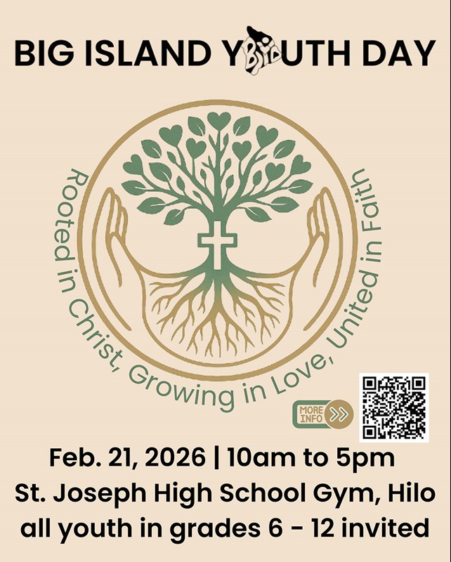 Join Us for Big Island Youth Day! All middle school and high school youth are invited to Big Island Youth Day (BIYD) — a joyful day to rediscover your faith, grow in community, and encounter Christ in a fun, spirit-filled environment! Bring your friends, your energy, and your heart — this is a great chance to deepen your relationship with God and connect with other Catholic youth from around the diocese.