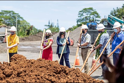 Hawaii Island’s Puna district will soon have its first affordable housing development dedicated to kūpuna. Thanks to a public-private partnership, last month HOPE Services Hawaii held a groundbreaking ceremony for the Sacred Heart Affordable Housing Project. The Pahoa development will consist of 12 modular efficiency studio units, each with its own kitchen and bathroom, as well as a central pavilion and office. The project sits on land adjacent to Sacred Heart Shelter, the micro-shelter village constructed to house those displaced by the 2018 lower Puna lava eruptions.