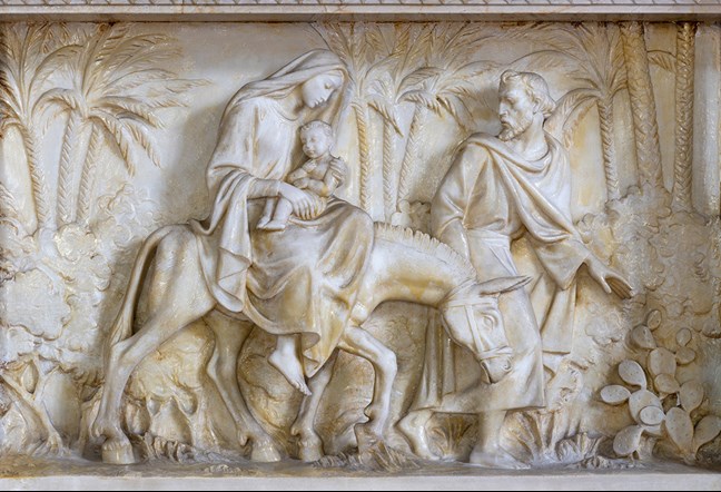 Asti, Italy: Marble relief of the Flight to Egypt in the church Santuario di Nostra Signora Porta Paradisi. (Renata Sedmakova / Shutterstock.com)